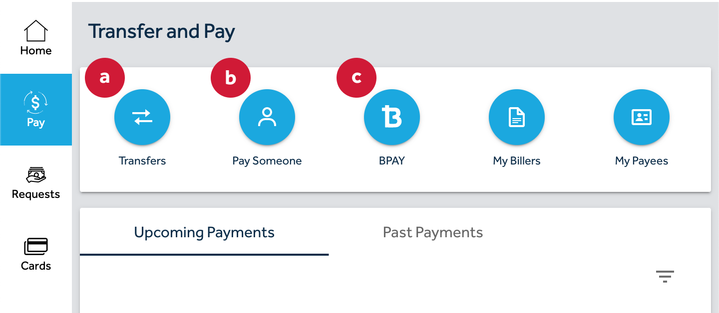 - Pay Someone (b): You can use the Pay > Pay Someone feature to pay from your accounts into an external Australian account (either another person or your own) using their BSB and Account Number.
