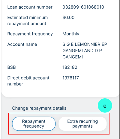 - Here you can make the required changes to your repayment details, including frequency and extra payments (e).