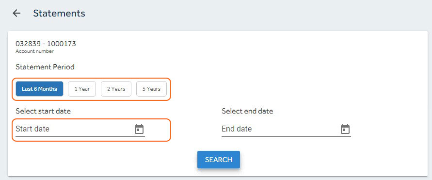 - Select the Statement Period and click ‘search’. Or you can also generate a statement from a ‘start date’ and ‘end date’.